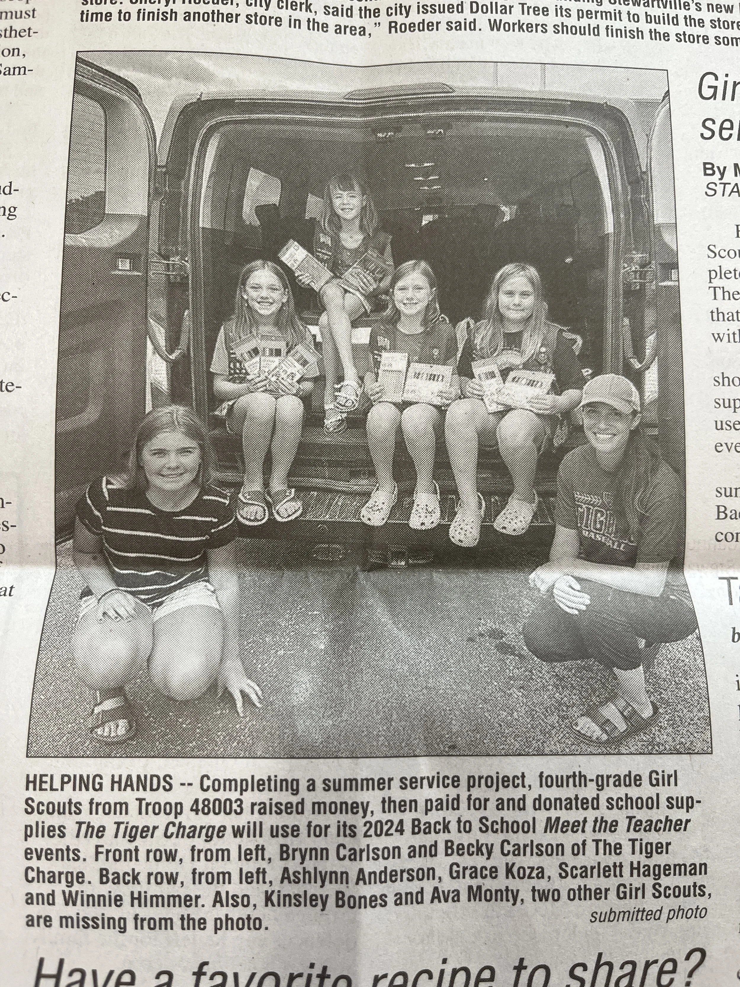 The Girl Scouts raised money and got school supplies to donate to The Tiger Charge for the Back to School and Meet the teacher events!
